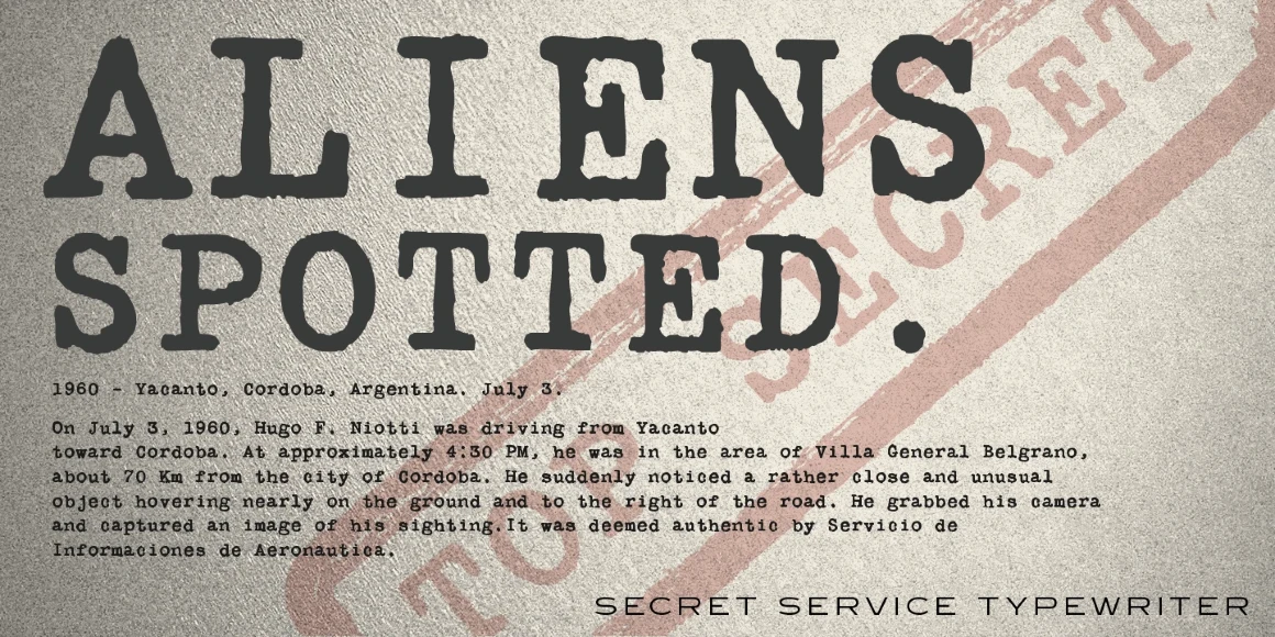Secret Service Typewriter draws its inspiration from an early Remington typewriter font, originally created by the Keystone Type Foundry around 1905. Its monospaced characters and slightly rough texture capture the charm of vintage mechanical typewriters, complete with their telltale imperfections. This typeface is perfect for adding a retro or historical touch to your designs — whether working on a themed periodical, crafting a poster, retro brand identity, or spy-themed museum exhibits.