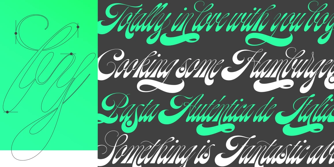 What if Platt R. Spencer and Charles P. Zaner were born in the mid-20th Century? What if they were fans of The Beatles or The Mamas & Papas? Beatle is what those masters would have made. Letters shouting for peace, like a true hippie does, with a lot of elegance. With Beatle, Max wanted to mix the delicacy of Engrosser’s script with the exuberance of flower power. The result is a font designed with freedom, filled with provocative alternates and fat tails. Enjoy it, and of course, let it be.