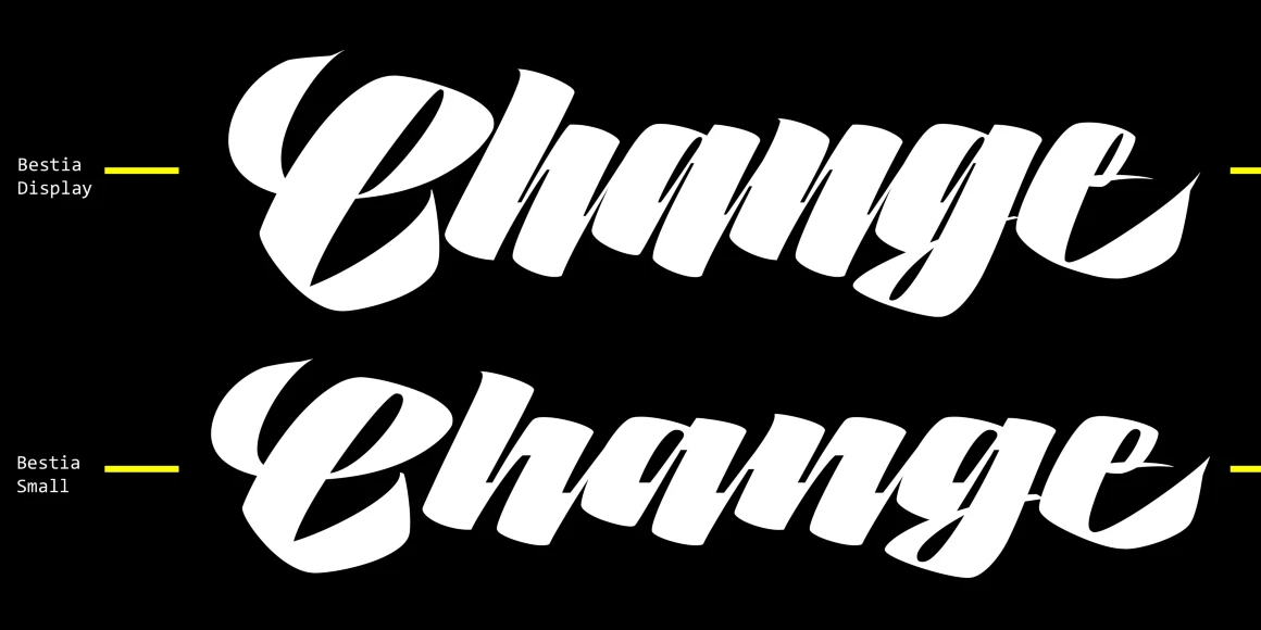 Bestia is a high-contrast brush script that commands attention with bold sweeping strokes inspired by Max’s pointed brush calligraphy practice. Conveying raw energy, the gestural forms are perfect for high-end brands and glossy magazines. Subtle shifts in contrast provide dramatic emphasis for large type and improved readability at smaller sizes. Daring and lively, Bestia will definitely leave a mark.