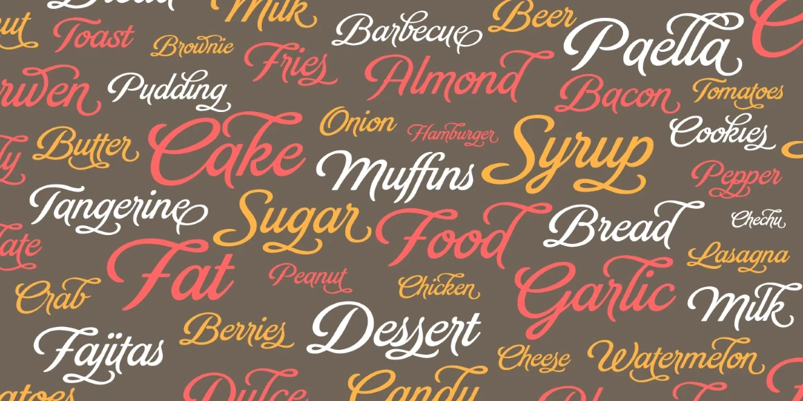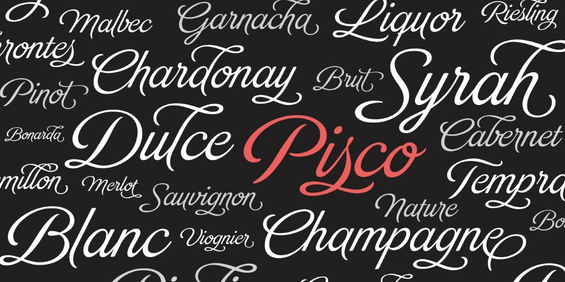Brand results from the desire to design a soft cursive script that would become as ubiquitous as Jam jars, Warhol’s “Tomato Soup,” chalk lettering, and baseball. First and foremost, it is a typeface for brands. One might even think it is mainly for packaging. But clever designers can use it across magazine spreads, party invitations, logotypes, packaging, and advertisements. Look at the ample alternates, ligatures, and ornaments to expand your ideas further into the unexpected!