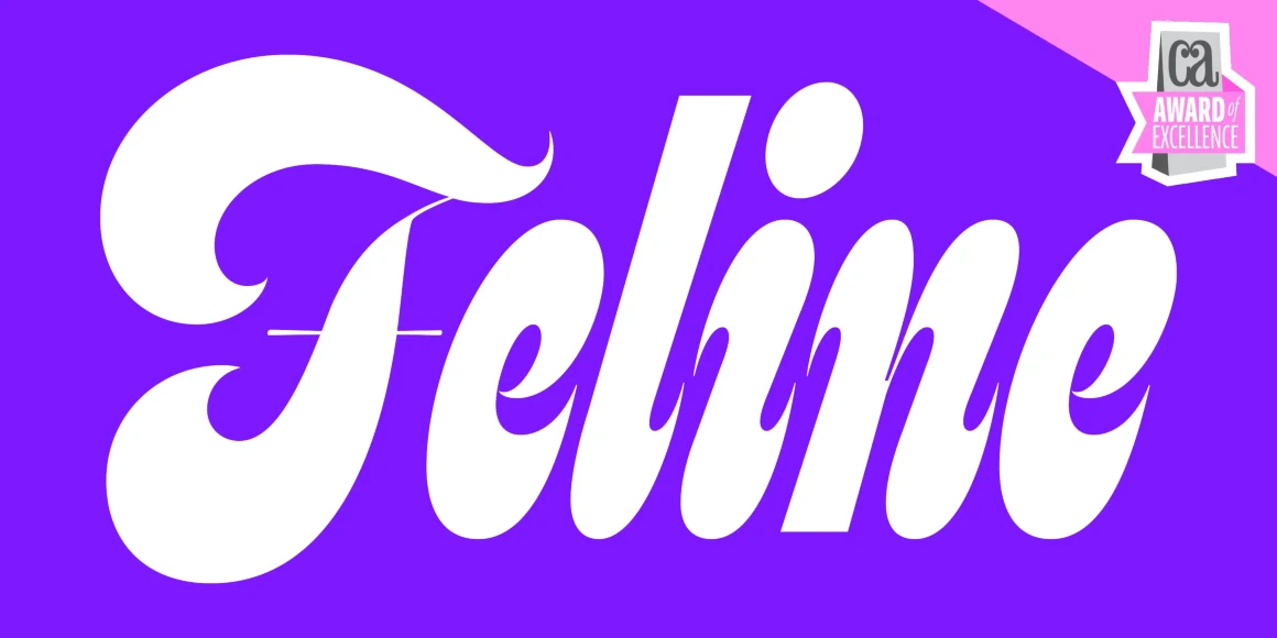 Feline is a sinuous script with exaggerated swashes and playful curves. Inspired by lettering spotted on a vintage pinball machine, it evolved into a liquid and groovy design evocative of other psychedelic 1960s scripts. The twist? The letters rarely connect! Its sculptural rhythm and expressive forms make it ideal for giving posters, magazines, packaging, and brands a voice as distinctive as its letterforms. Available in 6 weights, Thin to Extra Black, and 2 styles, Soft and Sharp, or as a 2-axes variable font.