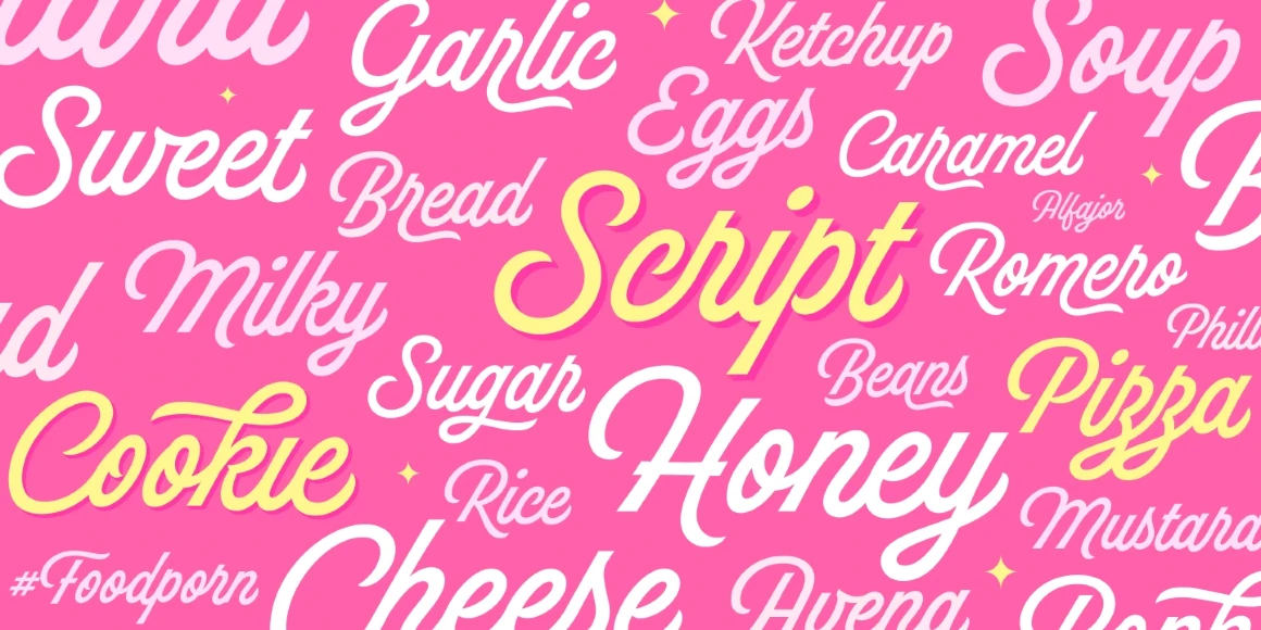Hot Script is a bold script inspired by the local signs on the walls, doors, and windows of the restaurants in Buenos Aires. Its expressive curves and handcrafted details evoke the warmth of flat brush lettering but with enough contrast to add visual flair. The abundance of alternates and dingbats combined with layering options like Shine or Shade styles offer extra impact and dimension. Hot Script is designed for versatility and is ideal for restaurant logos, packaging, or bold display headlines.