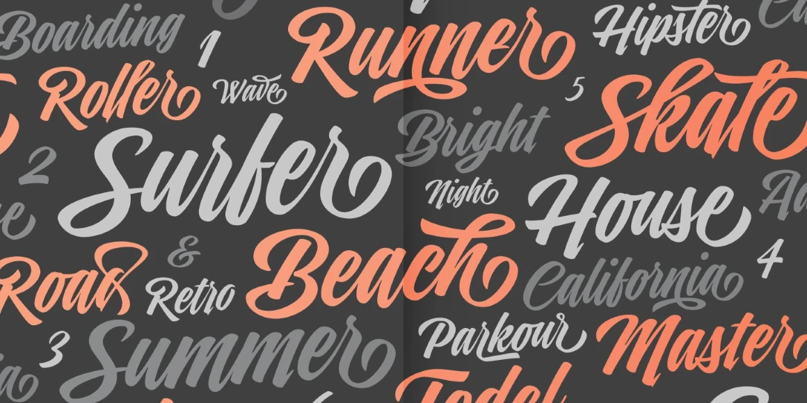 Indie is a lively brush script capturing free-spirited, sun-soaked summers. Inspired by the pulse of street style and hand-painted signs — with a nod to Carl Rohrs — it channels the expressive flow of a pointed brush with bold curves and a laid-back rhythm. Regular, Inline, Shade, Shade Solo, and Caps all deliver a typographic palette perfect for live event posters, artisanal gift packaging, pop music branding, rebellious fashion labels, or anything needing daring spontaneity and edge.