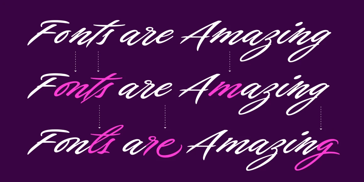 Live is an dynamically vibrant, free-flowing script with a youthful spark and assured flair. Inspired by modern calligraphy and brush lettering, its smooth strokes and rhythmic curves bring energy and elegance to any layout. At the same time, the alternates and ligatures maintain a genuine hand-painted look. Perfect for fashion branding, magazine spreads, music packaging, or beauty products, it adds a stylish, confident touch. Pair it with catchwords and ornaments to dial up the charm.