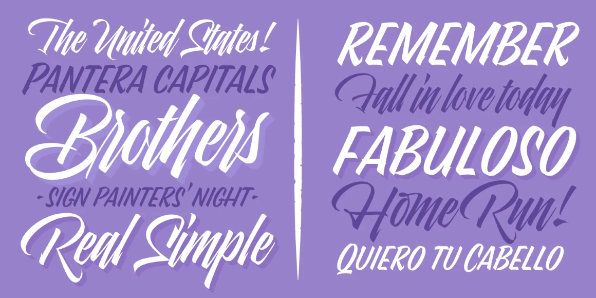 Pantera is a wild, rhythm-rich script that dances between thick and thin with feline precision. Rooted in pointed brush calligraphy, its expressive curves and shifting stroke patterns bring hand-lettered spontaneity into a conceptually striking design. Thanks to increasingly expressive styles and playful alternates, Pantera easily adapts to any situation — ideal for athletic branding, album covers, editorial headlines, or any typography ready to pounce off the page.