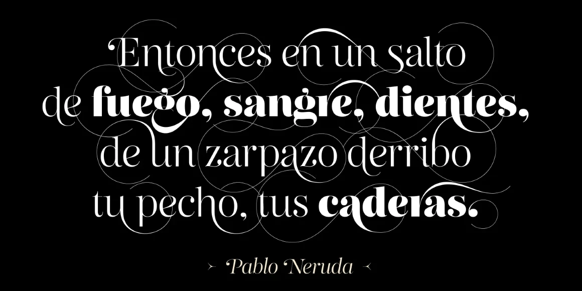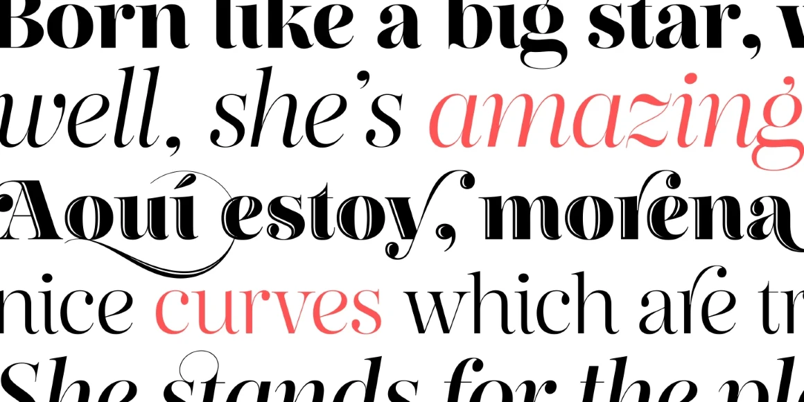 Reina Neue is a poised and expressive serif with a quiet sense of grandeur. Sculpted curves, generous contrast, elegant ball terminals, and abundant swash alternates give it a refined presence. While three optical sizes and an array of weights offer typographic utility. Regal yet approachable, this family adds a touch of drama to book covers, editorial spreads, fashion brands, book covers, and packaging. Reina Neue turns heads softly — proof that beautiful things don’t need to ask for attention.