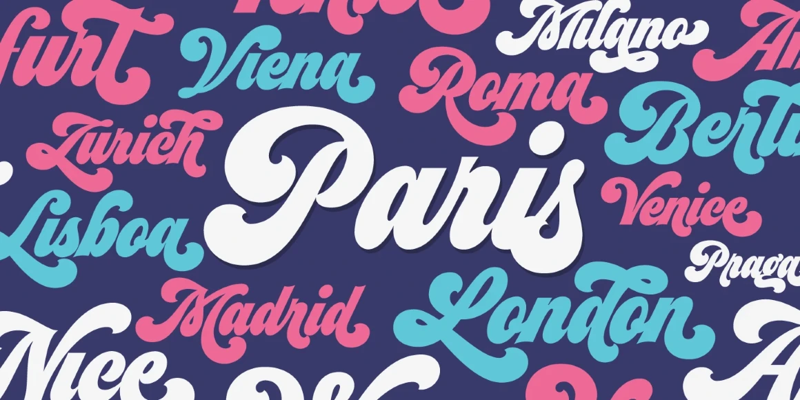 Seventies is a bold, curvy script channeling the free spirit of 1970s lettering design. With lush, rolling forms, ultra-thick strokes, and a brushy rhythm, it gives any project a groovy, high-impact look. A nod to something vintage with a playful twist, it’s perfect as the typographic link in any brand identity system. Think cross-media promotion, including titles, posters, packaging, brochures, and advertisements. Whether you’re aiming for retro flair or good vibes, Seventies brings the funk!