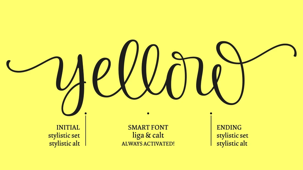 Default positional forms appear while you are writing when Standard Ligatures and Contextual Alternates features are on. Just keep them activated and let Limon Script do the rest. It warrants that all the connections will look good. Also, you can activate stylistic alternates, swash, titling and stylistic sets to have options for capitals, initials and terminals. Each Script Font reaches a total of more than 2900 glyphs (languages for every alternate included). Use professional software that widely support Open Type features. Otherwise, you may not have access to some glyphs. For further information about features and alternates, see the User Guide. Limon has extensive Western, Central and Eastern European language support.