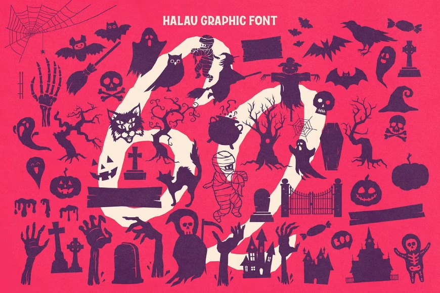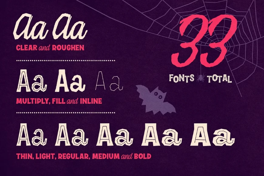 Vintage Voyage Design’s Halau Spooky Script is a creepily enchanting typeface for Halloween or other ghoulishly delightful events. It is meant for headlines, but because of its open shapes, it also works well at smaller subhead sizes! The various alternates within stylistic sets will completely satisfy the most sophisticated font gourmet, too. Choose Halau Spooky Script for party invitations, food packaging, theater posters, and anywhere else you might want something a little devilishly dark.