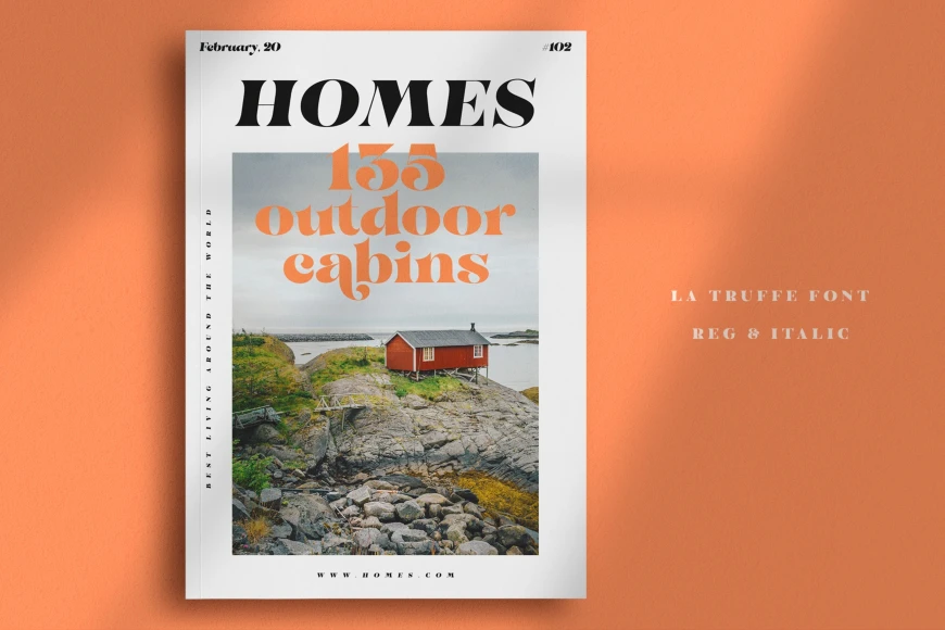 La Truffe is a stylish didone display typeface with high contrast and a refined structure. Available in Regular and Italic styles, it blends classic elegance with a modern edge. Designed to stand out with bold character and graceful calligraphic details. Ideal for projects that call for luxury and sophistication, such as gourmet food, fashion, beauty, cosmetics, and fragrances. Works beautifully in logos, signage, packaging, apparel, marketing materials, invitations, book covers, and social media graphics. Made for designs that need poise, personality, and visual impact.