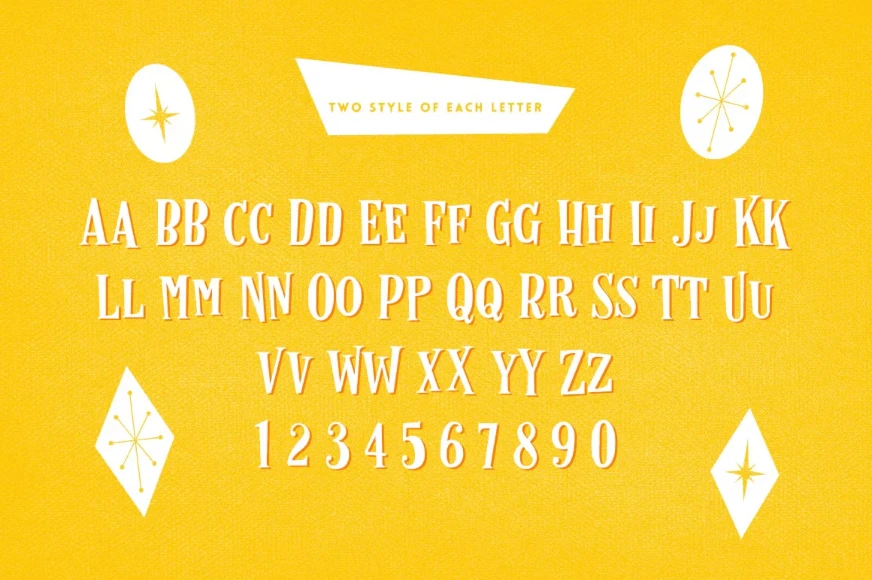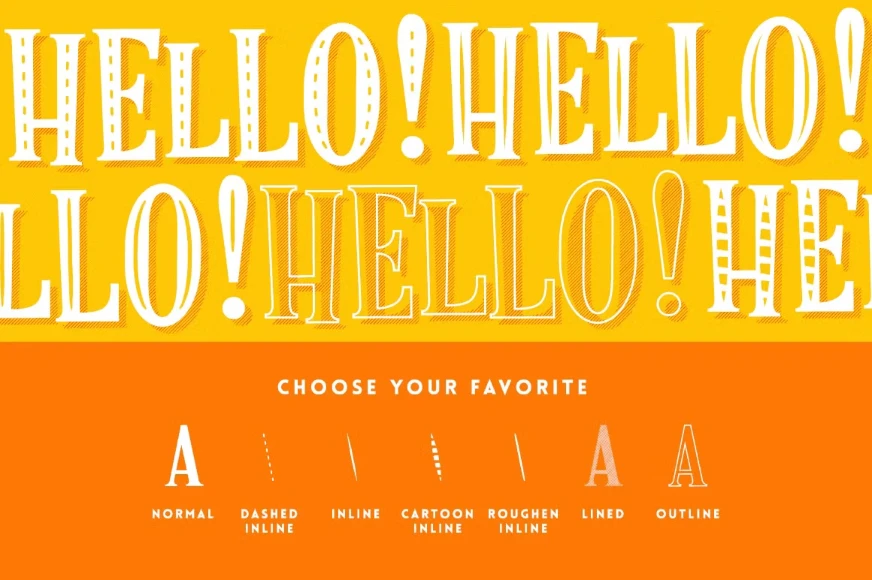 Retro Luxe is a layered font family inspired by postcards and advertising from the 1950s and early 1960s. Designed to bring a bold vintage flair to any project. Includes seven styles that can be combined for unique, eye-catching results. Use the Lined style for shadows or as a striking front layer. Choose from four inline variations and add an outline for decorative impact. Perfect for posters, signage, branding, and designs with a nostalgic touch. Made to stand out with a classic retro look.