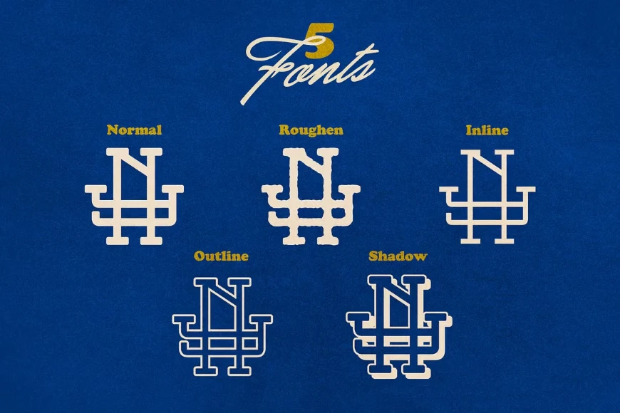 Two-Letter Monogram is a font designed for creating bold, custom monograms with a vintage or sporty feel. Perfect for logos and merch, including t-shirts, mugs, flags, pillows, and more. Built to deliver strong, stylish letter pairs for standout designs with a personal touch. Ideal for branding and decorative uses with a classic edge.