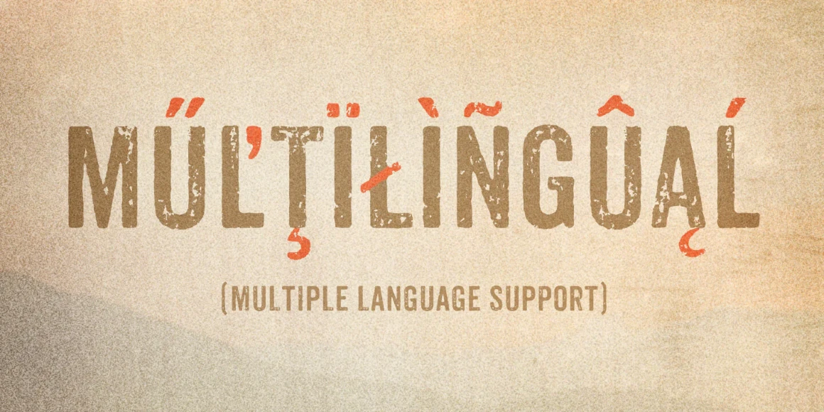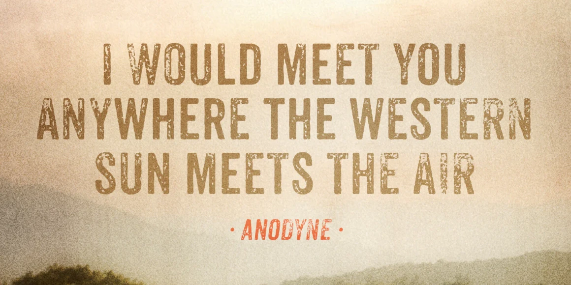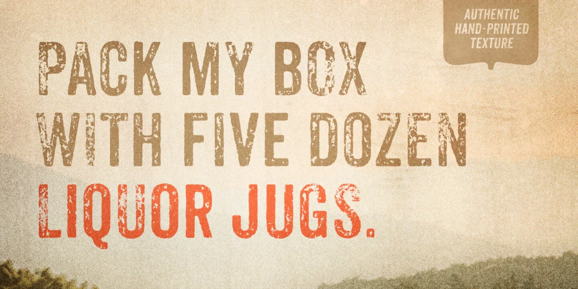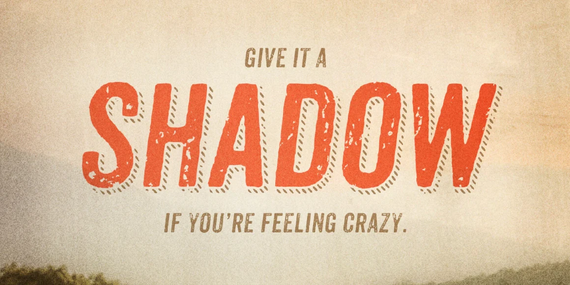 Anodyne is a warm and weathered all-caps font from Yellow Design Studio with hand-printed texture and unique shadow options. Features include four distress variations for each letter and at least two for every other character. Double-letter ligatures add realism by eliminating identical texture in adjacent characters. Layering regular and shadow versions allows independent control of the shadow color. Switch between lower-case and capital letters to change texture, or use opentype contextual alternates for additional, extra-distressed variations. Anodyne has an extended character set for multiple language support.