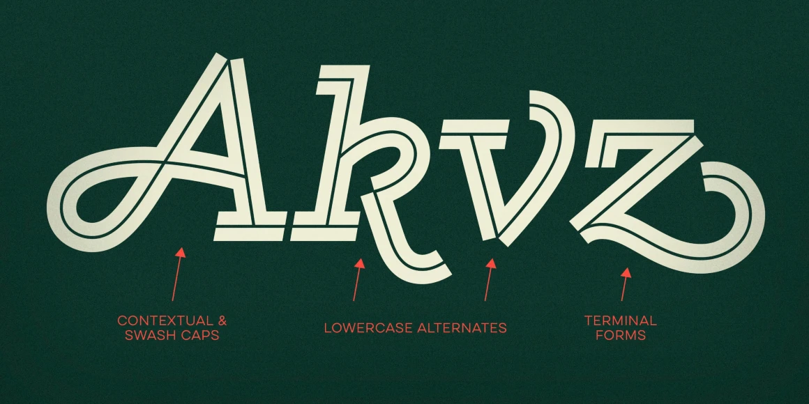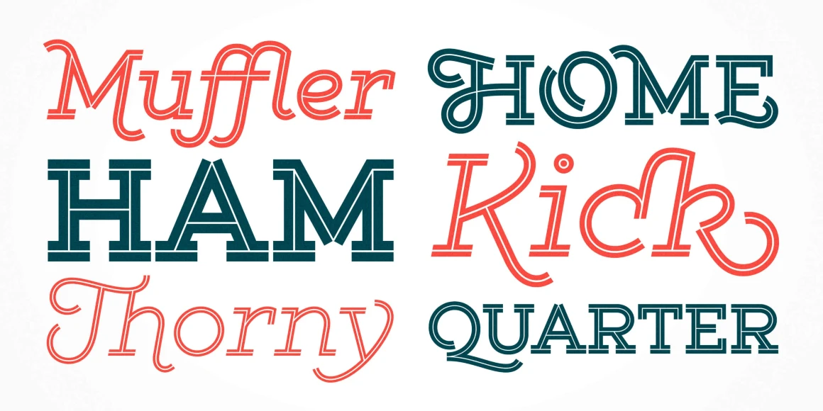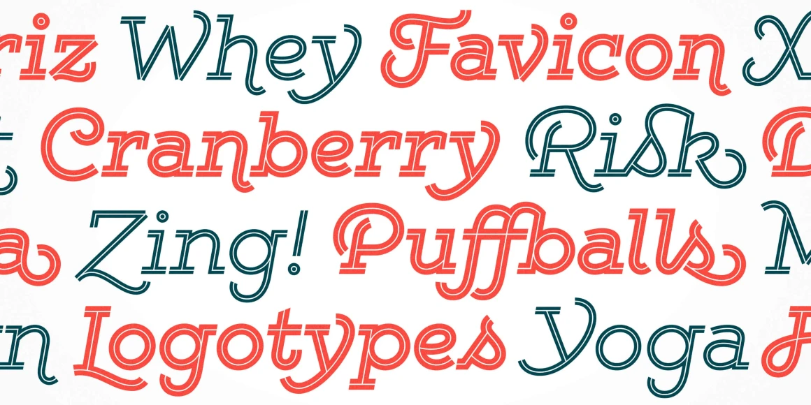 Gist from Yellow Design Studio is an inline slab serif with a retro yet modern vibe. It’s a collision between monoline slab and indie script. With 627 glyphs per weight, it’s highly customizable…either keep it simple with the base character set or use ligatures, alternates and swashes for extra flair. All-caps typesettings have an especially retro edge. Also included are line layers for adding color to the inline areas.