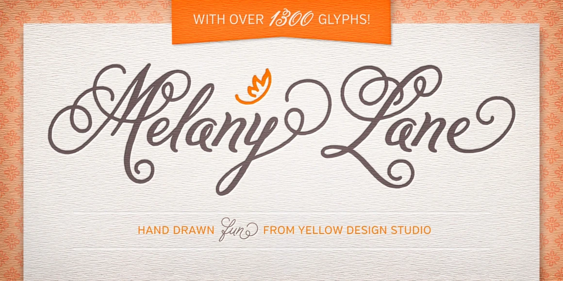 Melany Lane is a flourishy script based on traditional letterforms, but with the added quirks and warmth of hand-drawn type. The base character set has traditionally connected letters and an expressive charm. Contextual alternates add flair with unconnected letters and additional contour options. Mix in swash and stylistic alternates for extra funkiness and fun. Melany Lane features regular and bold, 118 eclectic ornaments, and a set of 14 seamless background patterns.