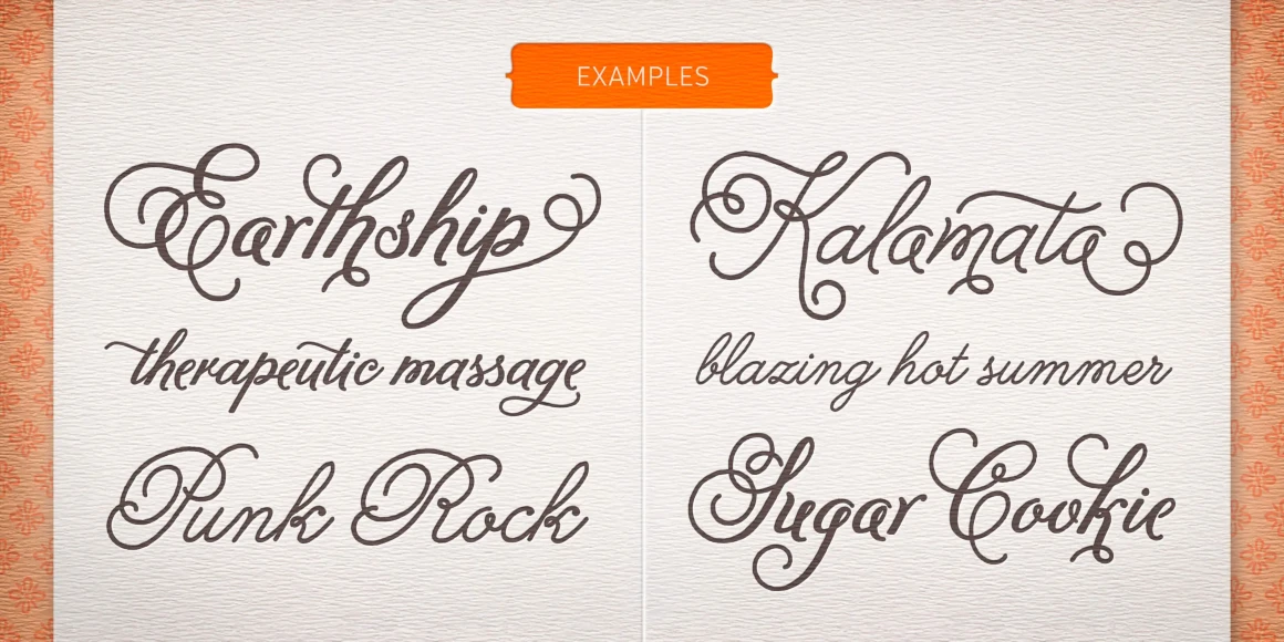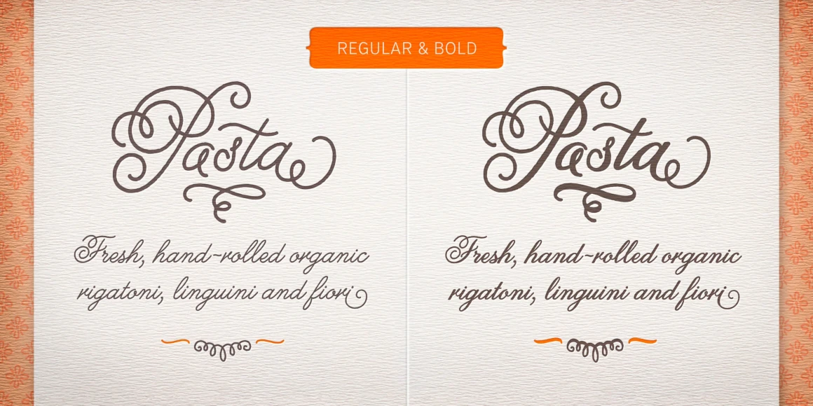 Melany Lane is a flourishy script based on traditional letterforms, but with the added quirks and warmth of hand-drawn type. The base character set has traditionally connected letters and an expressive charm. Contextual alternates add flair with unconnected letters and additional contour options. Mix in swash and stylistic alternates for extra funkiness and fun. Melany Lane features regular and bold, 118 eclectic ornaments, and a set of 14 seamless background patterns.